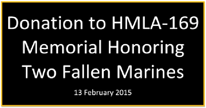 Donation to HMLA-169 Memorial Honoring Two Fallen Marines